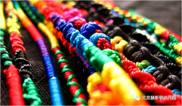 The children selected 5 of their favorite colors, together weaving colorful rope, wearing each other, with colorful rope may be a year children can safely, healthy growth.